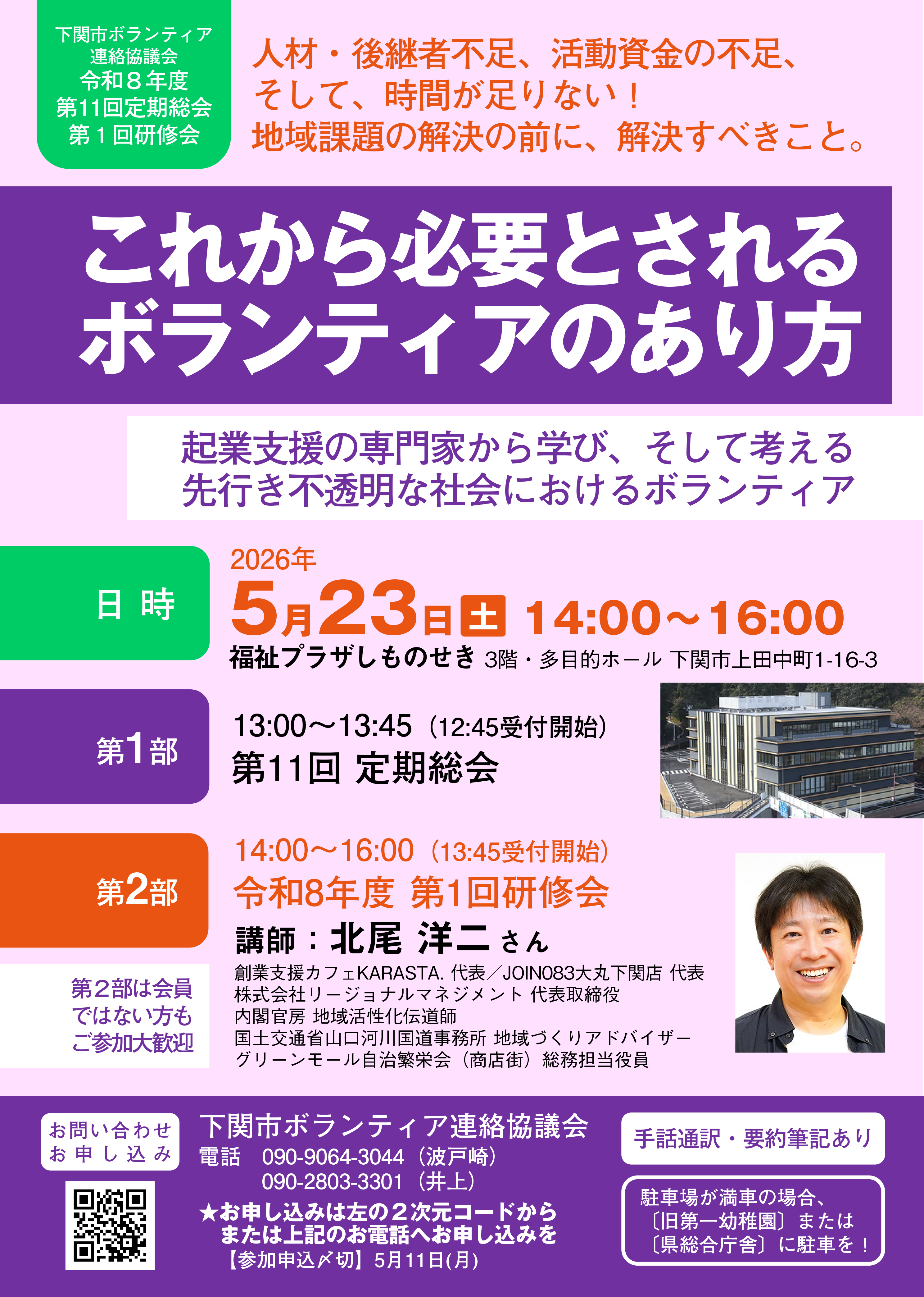 下関市ボランティア連絡協議会 令和8年度 第1回研修会「これから必要とされるボランティアのあり方」が開催されます。